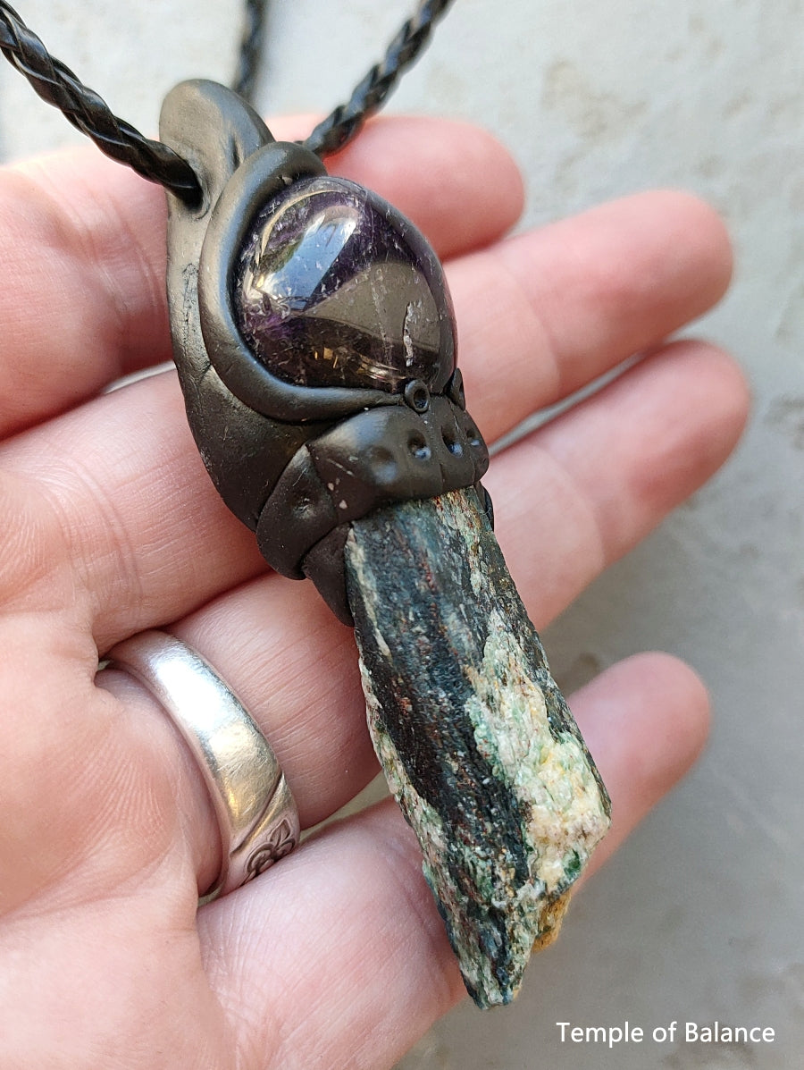 Pendant - Kyanite Fuschite with Amethyst
